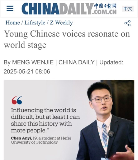 The global finals of the International Public Speaking Competition (IPSC) 2025 recently concluded in London, UK. Chen Anyi, a sophomore student majoring in International Economics and Trade (Chinese-foreign Cooperation in Running Schools), represented China in the competition. His thought-provoking topic and heartfelt delivery won enthusiastic responses and high praise from the international audience, and his performance was reported by China Daily.